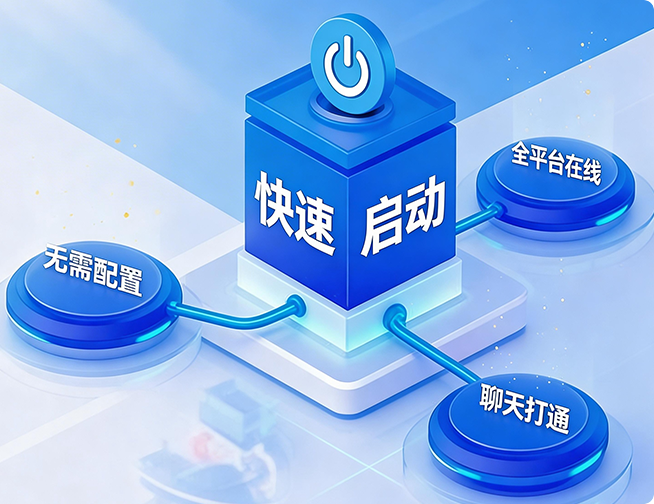 无需复杂配置,快速启动 一次部署,全平台在线 飞书等你日常用的聊天工具全部打通。