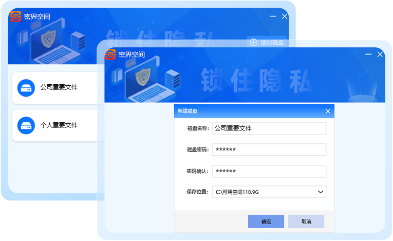 基于文件创建一个虚拟的加密磁盘,将其装载到一个真实的磁盘盘符,用于存放私密文件。